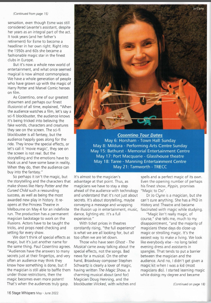 “Jo Clyne is no ordinary magician. She brings a sense of wonder and curiosity, and she’s very funny”